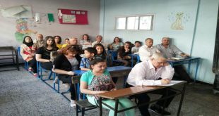 حمص-سانا احتفالا بأعياد نيسان وأيار نظم المكتب الفرعي لنقابة المعلمين بجامعة البعث في حمص اليوم معرضا للكتاب في بهو كلية الطب البشري بمشاركة دور نشر من حمص واللاذقية وحلب ودمشق حيث ضم 1500 عنوان لكتب تخصصية وأدبية وثقافية واجتماعية ومعاجم …