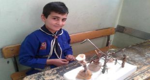 دمشق-سانا يبرز الطفل عدي قطرب بموهبته في تشكيل أعمال فنية باستخدام خامات الطبيعة من حبات البلوط والليمون وأغصان وأوراق الأشجار . وفي حديث لـ سانا أوضح عدي من الصف الرابع الابتدائي أن عمله عبارة عن تجسيد لعمل عائلات الفلاحين في قريته …