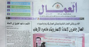 دمشق-سانا احتوى العدد الجديد من جريدة كفاح العمال الاشتراكي الصادرة عن الاتحاد العام لنقابات العمال أخبارا حول النشاط النقابي العمالي الذي تشهده اتحادات العمال في المحافظات إضافة إلى أخبار ذات طابع معاشي وخدمي ومقالات سياسية وثقافية. وفي الافتتاحية كتب جمال …