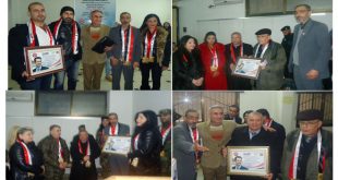 ريف دمشق-سانا حفل المهرجان الأدبي الذي أقامه فريق “عشاق سورية حملة سورية لنا” بقصائد وطنية وتكريم شخصيات ساهمت بالتصدي للإرهاب وأدواته وذلك في قاعة المحاضرات بالمركز الثقافي العربي في مدينة جرمانا. وشملت قائمة المكرمين قائد مجموعات الدفاع الشعبية في جرمانا …