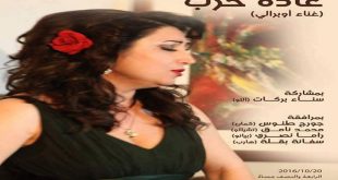 دمشق-سانا تحيي مغنية السوبرانو غادة حرب أمسية غناء أوبرالي عند الرابعة والنصف من مساء غد على مسرح الدراما بدار الأسد للثقافة والفنون بدمشق . ويرافق السوبرانو حرب في حفلها كل من راما نصري بيانو ومحمد نامق تشيللو وجورج طنوس كمان …
