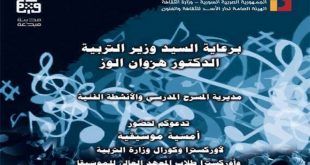 دمشق-سانا يحيي كل من أوركسترا وكورال وزارة التربية التابعين لمديرية المسرح المدرسي والأنشطة الفنية وأوركسترا طلاب المعهد العالي للموسيقا أمسية موسيقية عند السادسة من مساء الإثنين القادم على مسرح الأوبرا بدار الأسد للثقافة والفنون بدمشق. ويقود الحفل المايسترو رامي عودة …