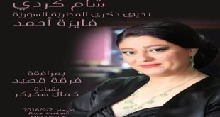 دمشق-سانا تحيي المطربة شام كردي الذكرى الثالثة والثلاثين لرحيل المطربة السورية الكبيرة فايزة أحمد في حفل غنائي بمرافقة فرقة قصيد بقيادة المايسترو كمال سكيكر عند السادسة من مساء الأربعاء المقبل على خشبة مسرح الاوبرا في دار الاسد للثقافة والفنون بدمشق. …