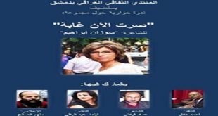 ندوة حوارية حول مجموعة “صرت الآن غابة” لسوزان ابراهيم في المنتدى الثقافي العراقي بدمشق