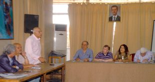 دمشق-سانا استشهد الأديب والقاص علي أحمد العبدالله أمين سر جمعية القصة والرواية جراء اعتداء المجموعات الإرهابية بقذائف صاروخية مساء أمس على حي باب توما بدمشق. وذكر مراسل سانا إن الشهيد العبد الله استشهد مع 8 مواطنين آخرين من بينهم طفل …