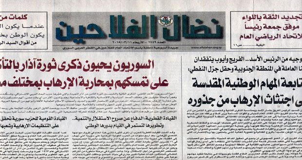 دمشق-سانا تسعى جريدة نضال الفلاحين الأسبوعية لتقديم محتوى إعلامي منوع وإفساح المجال للشأن الثقافي ما جعل العدد الجديد منها يضم عددا من المقالات والدراسات الأدبية إضافة لقصائد شعرية. وفي العدد كتب الدكتور عبد الناصر الشفيع عضو القيادة القطرية لحزب البعث …