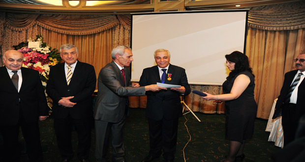 دمشق-سانا تقديرا لجهوده في نشر الثقافة وتطوير العلاقات بين البلدين قلد السفير الأرميني بدمشق الدكتور أرشاك بولاديان الكاتب والباحث الدكتور نبيل طعمة الوسام الذهبي للسفارة الأرمينية خلال حفل الاستقبال الذي أقيم بمناسبة الذكرى 23 لاستقلال إرمينيا في فندق الشام بدمشق …