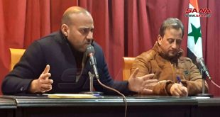 حلب-سانا نظمت مديرية الثقافة في حلب بالتعاون مع مؤسسة أرض الشام اليوم في صالة تشرين بحلب ندوة فكرية حملت عنوان (طوفان