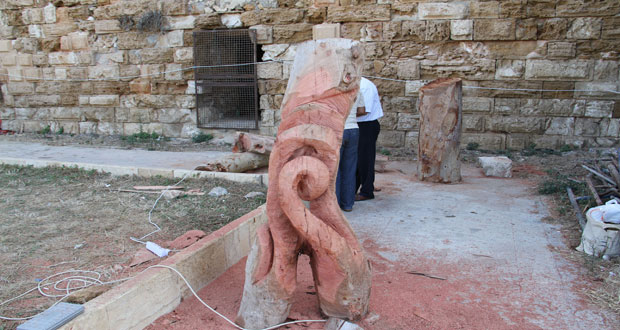 طرطوس-سانا التناغم بين الحجر الرملي الأصفر لواجهة طرطوس القديمة وبين خامات الخشب هو أول ما يستوقف زائر ملتقى النحت على الخشب فى مدينة طرطوس على وقع صوت المنشار تتخلله أصوات بلهجات مختلفة لا يمكن معها إلا أن تتذكر سورية الأجمل …