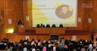 حمص-سانا بمناسبة اليوم العالمي للغة العربية أقامت كليتا الآداب والعلوم الإنسانية والتربية الثانية في جامعة البعث ندوة فكرية بعنوان تحيا
