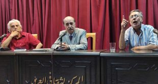 دمشق-سانا أقيم على مسرح المركز الثقافي العربي بكفرسوسة محاضرة بعنوان (الهوية التاريخية لبلاد الشام العريق)