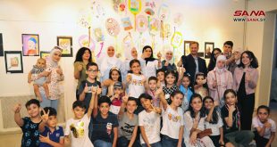 دمشق-سانا بلوحات بديعة رسمتها أنامل صغيرة امتزجت بروح الطفولة وبراءتها أقيم معرض رسومات الأطفال