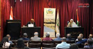 دمشق-سانا أقامت مؤسسة القدس الدولية سورية و اللجنة الشعبية العربية السورية لدعم الشعب الفلسطيني و مقاومة المشروع الصهيوني والفصائل الفلسطينية المقاومة اليوم محاضرة بعنوان التراث وأهميته في التصدي