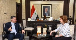 دمشق-سانا بحثت وزيرة الثقافة الدكتورة لبانة مشوح مع سفير فنزويلا في دمشق خوسيه غريغوريو بيومورجي موساتيس سبل دعم وتطوير