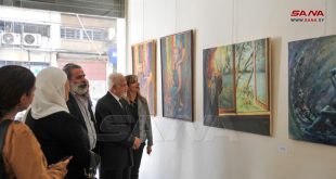 دمشق- سانا عكس معرض “فنان بريشة فنان” مساء اليوم في صالة عشتار حالة المحبة والصداقة التي تجمع الفنانين التشكيليين السوريين