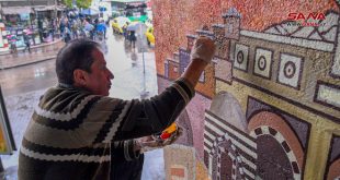 دمشق-سانا شارف الفنان التشكيلي عمر المدني على الانتهاء من رسم لوحتين جداريتين تحت جسر فكتوريا، وذلك