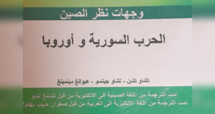 دمشق-سانا “وجهات نظر الصين – الحرب السورية وأوروبا” كتاب يتناول الحرب على سورية وموقف الدول الأوروبية ونظرة الصين لها للباحثين “تشاوشن وتشاوجيستو.. وهيوانغ مينمينغ ”