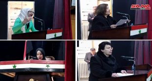 حمص-سانا حضرت تضحيات أبناء الوطن بوجه الحرب الإرهابية وقضايا الأمة في اللقاء الشعري الذي دعت له رابطة الخريجين الجامعيين في حمص. وبدأ اللقاء الذي أقيم بمناسبة الذكرى الـ 58 لثورة 8 آذار الشاعر حبيب ناصر حيث تغنى في قصيدته بأمجاد …