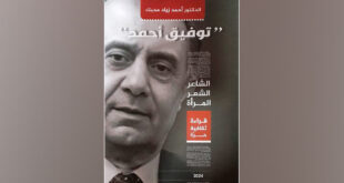 دمشق-سانا يبحث الكتاب الجديد للناقد الدكتور أحمد زياد محبك “توفيق أحمد الشاعر.. الشعر.. المرأة..