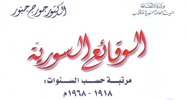 دمشق-سانا يقدم الباحث الدكتور جورج جبور في مؤلفه الوقائع السورية مرتبة حسب السنوات 1918/1968م سردا تاريخيا متتاليا لأحداث شهدتها الساحة السياسية السورية على مدى خمسين عاما كان بينها تطورات وأحداث هامة بدءا من تحررها من نير الاحتلال العثماني ثم تعرضها …