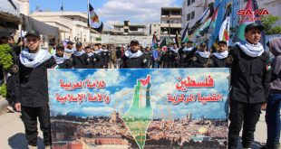 حلب-سانا شهد مخيم النيرب في حلب اليوم مسيرة حاشدة، ضمن فعاليات يوم القدس العالمي، ندد المشاركون فيها