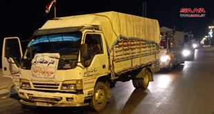 حلب-سانا وصلت إلى حلب مساء اليوم قافلة مساعدات إنسانية قادمة من درعا، مؤلفة من 17 شاحنة تحمل