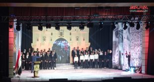 حلب-سانا أقامت محافظة حلب مساء اليوم احتفالاً بالذكرى السادسة لتحريرها من الإرهاب بعنوان (نصرنا ميلاد) على مسرح نقابة الفنانين