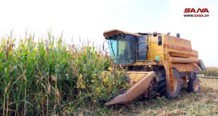 حلب-سانا تتواصل عمليات حصاد موسم الذرة الصفراء بريف حلب الشرقي كمحصول استراتيجي