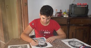 حلب-سانا يبدع الشاب أحمد سواس برسم اللوحات الفنية والبورتريه والوجوه الإنسانية