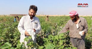 حلب-سانا بدأت عمليات جني محصول القطن في مختلف المحافظات حيث بلغت المساحات المزروعة 24211 هكتاراً