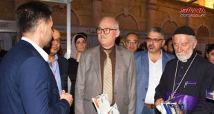 حلب-سانا قام وزير شؤون رئاسة الجمهورية منصور عزام بزيارة الباحث والمؤرخ السوري محمد قجة في منزله بمدينة حلب مطمئناً
