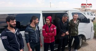 حلب-سانا تم اليوم تحرير 5 مختطفين كانت التنظيمات الإرهابية تحتجزهم في منطقة الباب بريف حلب الشمالي الشرقي.
