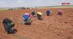 حلب-سانا نفذت مديرية الزراعة والإصلاح الزراعي في محافظة حلب يوماً حقلياً لزراعة محصول القطن بالتشاركية مع الفلاحين في قرية تل عابور