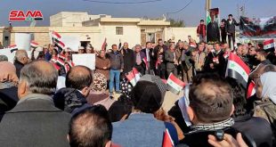 حلب-سانا أكد أهالي قرية الزيارة بريف حلب الشمالي خلال وقفتهم الاحتجاجية اليوم رفضهم الاحتلال التركي وتواجده اللاشرعي على الأراضي السورية منددين بالممارسات الوحشية التي يرتكبها مرتزقته بحق المواطنين. ورفع المحتشدون الأعلام الوطنية واللافتات المطالبة بخروج المحتل التركي من جميع الأراضي …