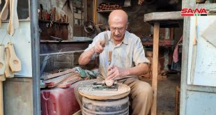 حلب-سانا يعمل محمد تفنكجي منذ 60 عاماً في مهنة خراطة الخشب مشكلاً بيديه تحفاً فنية تتراءى فيها روعة الانسجام والدقة بمهارة الصنع. ففي مشغل تفنكجي للخراطة ترى رفوفاً خشبية تمتد عليها أرجل طاولات بأشكال مختلفة ومعدات خشبية للمطبخ من شوبك …