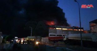 إصابة 8 أشخاص بحروق وفقدان 3 آخرين في حريق اندلع بمعمل لصناعة الدهانات والمواد البلاستيكية في حلب