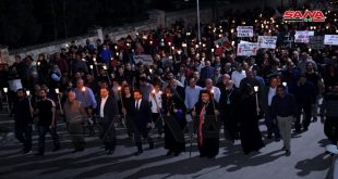 حلب-سانا أحيت الطوائف الأرمنية بحلب اليوم الذكرى 106 لجريمة الإبادة الجماعية المرتكبة بحق الأرمن على يد الدولة العثمانية بإقامة مسير بالشموع بمشاركة رؤساء الطوائف الأرمنية الأرثوذوكس والبروتستانت والكاثوليك وحشد من الأهالي تتقدمهم الفرقة النحاسية التابعة لنادي الشبيبة السورية الثقافي الأرمني. …