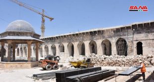 حلب-سانا تتواصل بأيادي السوريين عمليات ترميم الجامع الأموي الكبير في مدينة حلب الذي تعرض للتدمير من قبل التنظيمات الإرهابية قبل دحرهم عنها من قبل وحدات الجيش العربي السوري نهاية عام 2016.