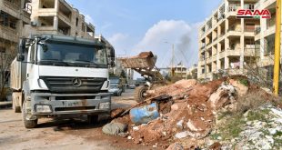 حلب-سانا تواصل الورشات الفنية في محافظة حلب إزالة السواتر الترابية التي خلفتها التنظيمات الإرهابية في الأحياء الغربية بحلب وفتح الطرقات والشوارع الرئيسية وترحيل الأنقاض والأتربة بهدف تسهيل عودة المواطنين لمنازلهم. كاميرا سانا رصدت أعمال فتح الطرق الممتدة من دوار قرطبة …
