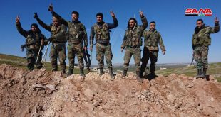 حلب-سانا استكملت وحدات من الجيش العربي السوري انتشارها في تل العيس الاستراتيجي بريف حلب الجنوبي بعد دحر الإرهابيين منه وتمشيطه والبلدة المجاورة له من مخلفات الإرهابيين. وكانت وحدات الجيش المتقدمة من ريف حلب الجنوبي التقت أمس بالقوات المتقدمة من ريف …