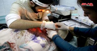 حلب-سانا أصيبت طفلة بجروح جراء سقوط قذائف صاروخية أطلقتها المجموعات الإرهابية على جمعية الزهراء بمدينة حلب. وأفاد مراسل سانا في حلب بأن المجموعات الإرهابية المنتشرة على الأطراف الغربية والجنوبية الغربية استهدفت بعد ظهر اليوم بعدد من القذائف الصاروخية حي جمعية …