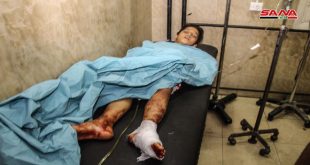 حلب-سانا استشهد طفلان وأصيب 8 مدنيين بجروح نتيجة اعتداء مجموعات إرهابية بالقذائف الصاروخية على حي الزبدية السكني بمدينة حلب. وأفاد مصدر في قيادة شرطة حلب لمراسل سانا بأن إرهابيي “جبهة النصرة” المنتشرين بمنطقة الراشدين غرب المدينة اعتدوا مساء اليوم على …