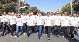 حلب-سانا نظمت وزارة السياحة اليوم ماراثونا انطلق من شارع فيصل وصولا إلى ساحة سعد الله الجابري بمدينة حلب حيث تم تدشين نصب (أحب حلب) الذي كتب بأحرف كبيرة وألوان مختلفة وذلك احتفاء بيوم السياحة العالمي. وردد المشاركون في الماراثون هتافات تؤكد …