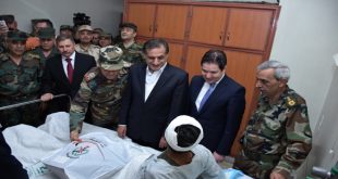 حلب-سانا تفقد محافظ حلب حسين دياب وأمين فرع حلب لحزب البعث العربي الاشتراكي فاضل نجار مشفيي الرازي والعسكري واطمأنا على صحة الجرحى والمرضى وقدما التهاني لهم وللجهازين الطبي والتمريضي والإداري وقدما الهدايا الرمزية للجرحى. وأوضح محافظ حلب أن المحافظة ومديرية الصحة …