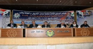 حلب-سانا طالب أعضاء مؤتمر نقابة عمال الكهرباء في حلب خلال مؤتمرهم السنوي الذي عقد اليوم بإعادة النظر في قيمة الكسوة العمالية والوجبة الغذائية بما يواكب ارتفاع الاسعار وملء الشواغر وايصال خط توتر كهربائي من الخط البديل إلى المحطة الحرارية لمتابعة …