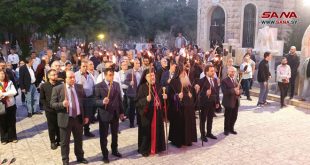 حلب-سانا نظمت مطرانية الأرمن الأرثوذكس لأبرشية حلب وتوابعها اليوم مسيراً بالمشاعل من حي الميدان