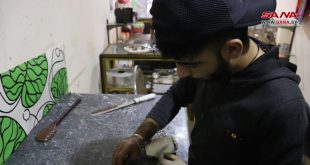 حلب-سانا في ورشته الصغيرة بحي الميدان بحلب يتابع جريح الوطن وائل أحمد حياته اليومية والمشاركة في العمل ومساعدة أخته في صناعة مختلف أصناف المعجنات والكعك والشوكولا