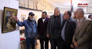حلب-سانا أخذ الفنان التشكيلي صالح البوشي زوار معرضه الفردي بعنوان “زمن المقاومة” في رحلة عبر التاريخ
