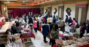 حلب-سانا نظمت إدارة أخوية (بيت المحبة) التابعة لمطرانية السريان الأرثوذكس اليوم معرضاً للأعمال اليدوية تحاكي موسم عيد الميلاد