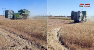 الحسكة-سانا بعد أيام من بدء جني محصول القمح للموسم الحالي حصد فلاحو الحسكة 1100 هكتار من أصل 95 ألف هكتار